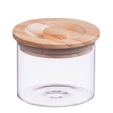 BARATTOLO IN VETRO CON COPERCHIO IN LEGNO H12