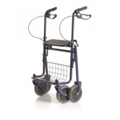 Rollator pieghevole in acciaio con sedile ribaltabile, cestino portaoggetti rimovibile e vassoio. Impugnature regolabili in altezza da cm 78 fino a cm 96. Due ruote anteriori piroettanti e due ruote posteriori fisse.