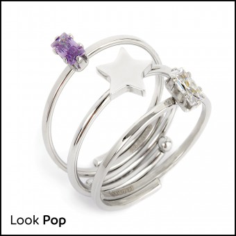 Composizione anelli in pvd oro con cristallo baguette