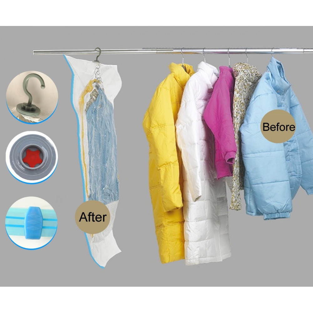BUSTA SALVA SPAZIO IN POLIAMMIDE E POLIETILENE CON GRUCCIA UN RISPARMIO DI SPAZIO FINO AL 75% PER MANTENERE VESTITI E ABITI ERMETICAMENTE PROTETTI CONTRO POLVERE UMIDITÀ' ODORE E TARME