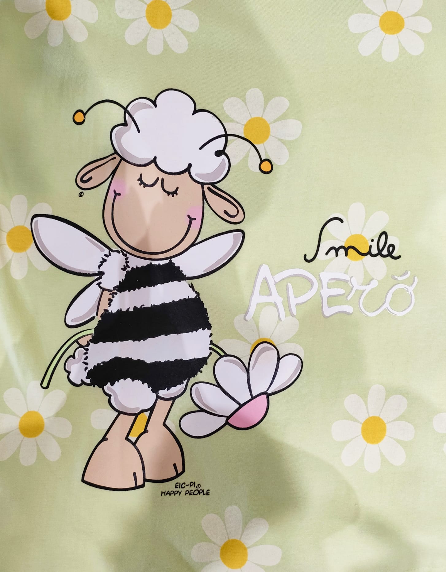 canotta a mezza manica da notte e/o homewear, verde lime chiaro con margherite. 100% cotone.