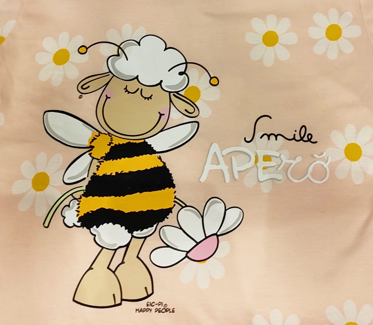pigiama da donna con pantaloni corti e maglia a mezza manica, rosa cipria con margherite. 100% cotone.