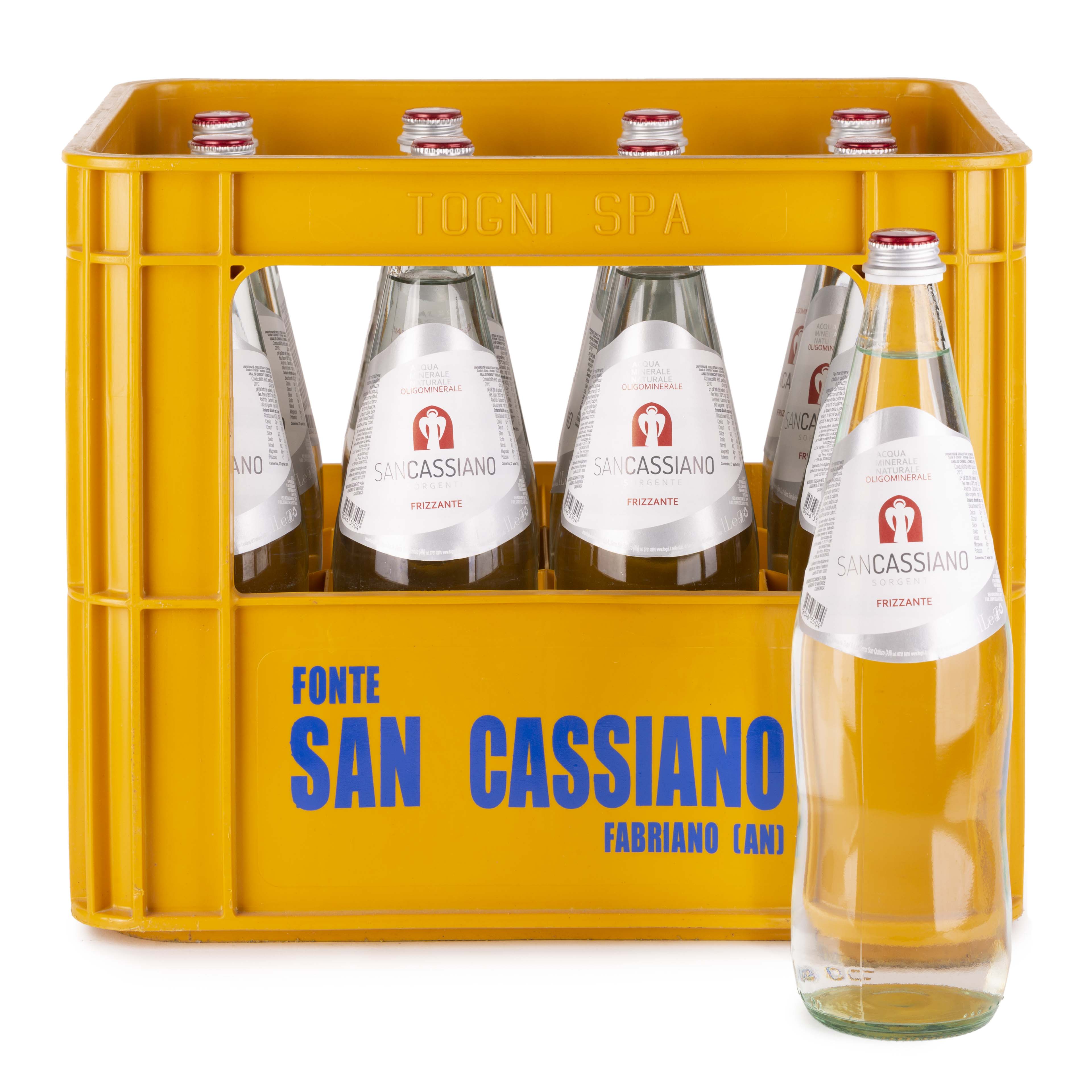 SAN CASSIANO_ Acqua " Frizzante " in VETRO Tappo a VITE 1 litro x 12 Bottiglie VUOTO A RENDERE